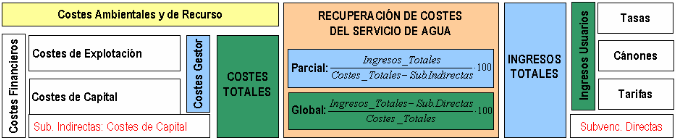 Análisis de recuperación de costes de los servicios relacionados con el agua. De acuerdo con la definición de los servicios de agua de la DMA, se han establecido los siguiente servicios, objeto de análisis: servicio del agua urbano (incluye abastecimiento y saneamiento de población e industria) y servicio al regadío.